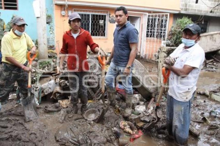 SAN MARTÍN TEXMELUCAN, Pue., 25 Junio 2012.- Decenas de personas fueron afectadas por el desbordamiento del río Atoyac en el municipio de San Martín Texmelucan. Toneladas de lodo empiezan a ser limpiadas por el ejército y los afectados. //Agencia Enfoque//
