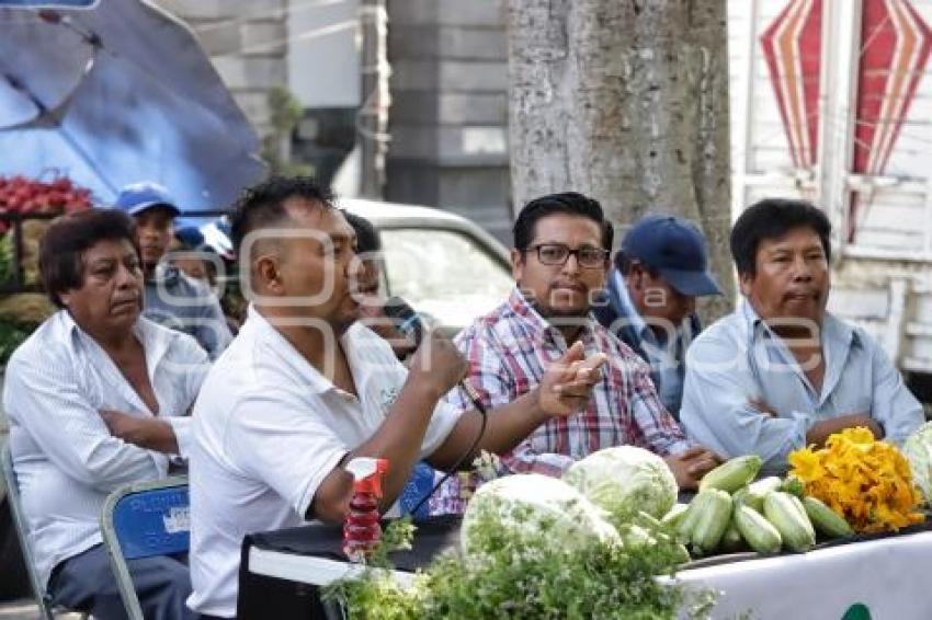 PUEBLA, Pue. 05 Abril 2020.- Integrantes del Frente de pueblos productores de hortalizas y legumbres, acompañados por Vladimir Luna, piden se les tome en cuenta en la licitación de gobierno del estado ante la escasez de ventas por la pandemia de Coronavirus. //Mireya Novo/Agencia Enfoque//