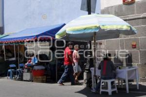 PUEBLA, Pue., 29 marzo 2015.- Instalación de puestos en la calle 16 de septiembre por las fiestas religiosas. //Mary Cortez/Agencia Enfoque//