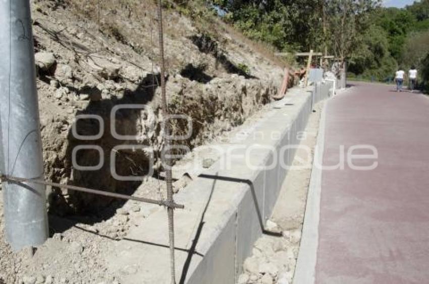 PUEBLA, Pue., 07 Enero 2013.- Miradores, muros de contención y un puente, son algunas de las partes del Ecoparque Metropolitano que lucen inconclusas en el tramo de Cúmulo de Virgo hacia la parte trasera del Tecnológico de Monterrey. Dos miradores, construidos con duela sobre una base metálica incluso lucen sin trabajadores que terminen la obra, que fue inaugurada en el marco de los festejos del 5 de Mayo de 2012. //Agencia Enfoque//