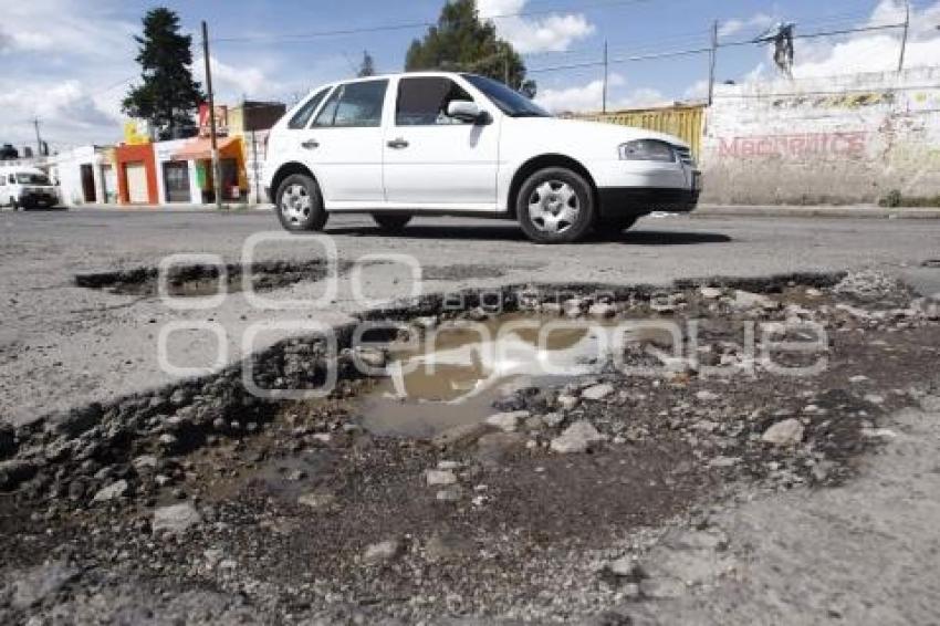 PUEBLA, Pue, 12 octubre 2014.- El desgaste de la carpeta asfáltica, el tráfico pesado y las constantes lluvias provocaron la aparición de baches de grandes dimensiones sobre la avenida 65 A oriente y la calle 2 sur de la colonia La Lagunela, generando molestias para los automovilistas y peatones. //Francisco Guasco/Agencia Enfoque//