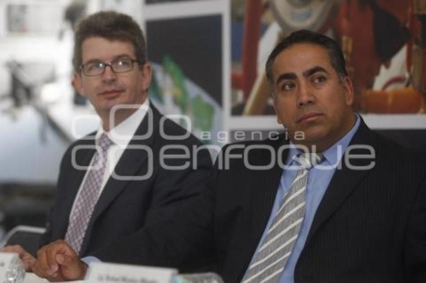 PUEBLA, Pue., 23 noviembre 2010.- Dieter Neuhaeusser, vicepresidente ejecutivo de Recursos Humanos de VW de México y el delegado de la Secretaría del Trabajo, Rafael Micalco durante la inauguración de la Expo Salud Integral que se realiza en la planta. //Agencia Enfoque//