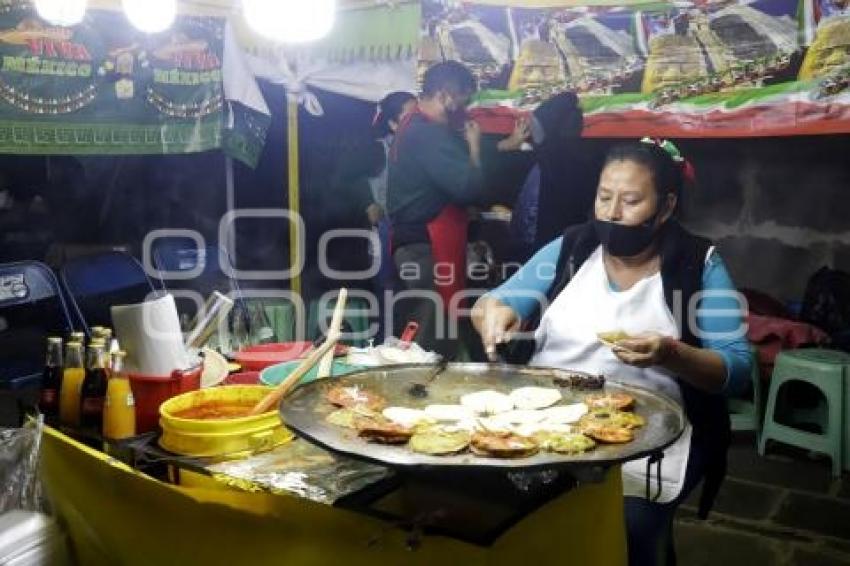 FIESTAS PATRIAS . VENDIMIA PUEBLA, Pue., 15 septiembre 2021. Vendedora de chalupas instalada en el área del Parián, previo al Grito de Independencia en el Zócalo. //Mireya Novo/Agencia Enfoque// Agregar a Carrito Comprar