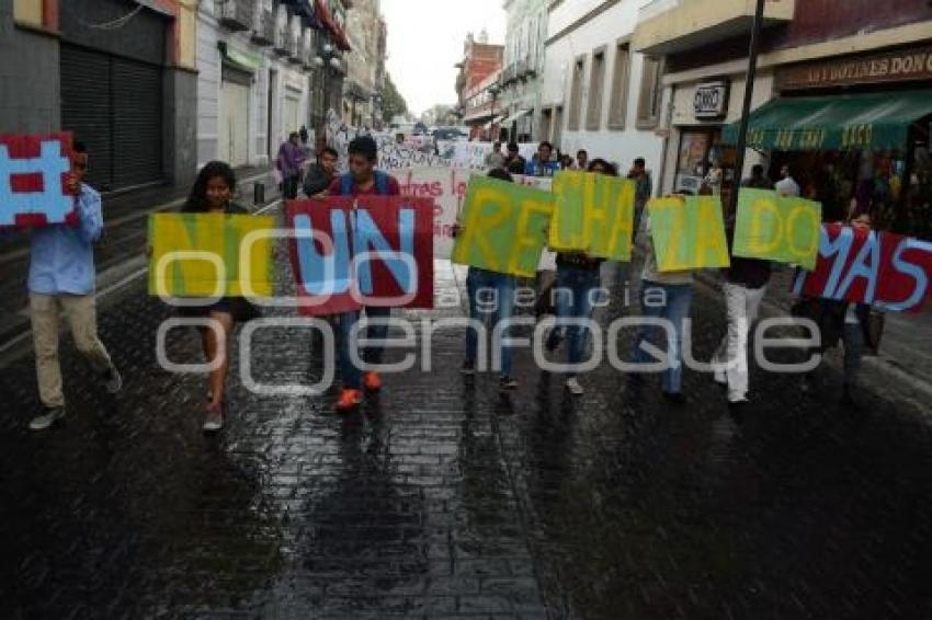PUEBLA, Pue. 23 Julio 2015.- Integrantes del Frente Estudiantil por una Educación para Todos (FEET), realizaron una marcha desde El Gallito del Paseo Bravo hasta el zócalo de la ciudad, exigiendo no sólo apertura de matrícula sino mayor apoyo a infraestructura y recursos tecnológicos. //Agencia Enfoque//