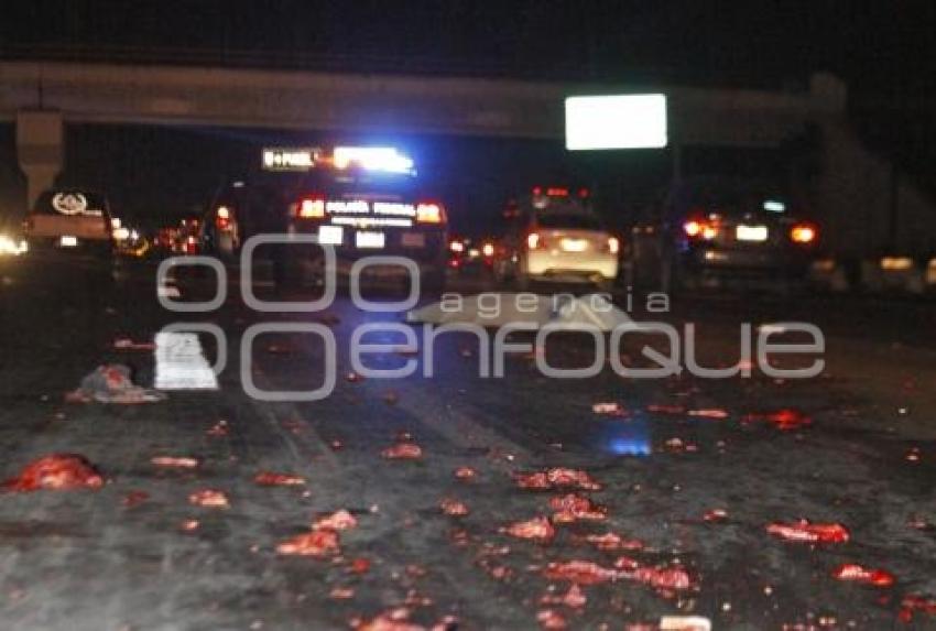 San Martín Texmelucan Pue. 07 de noviembre de 2015.- Muere una persona atropellada, despues de intentar cruzar con su bicicleta la autopista México-Puebla a la altura del kilómetro 91+240 con sentido a la capital poblana. //Héctor Tenorio//Agencia Enfoque//