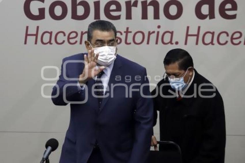 SERGIO SALOMÓN CÉSPEDES PUEBLA, Pue. 09 Enero 2023.- El gobernador Sergio Salomón Céspedes durante rueda de prensa mañanera. //Mireya Novo/Agencia Enfoque// Agregar a Carrito Comprar