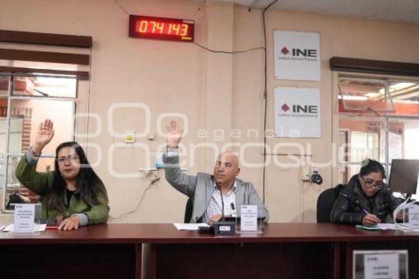 TLAXCALA, Tlax. 01 Junio 2025.- Consejero participaron en la instalación de la sesión permanente en el Consejo Distrital 02 del INE, a fin de darle seguimiento a la jornada electoral del Poder Judicial de la Federación. //Liz Romero/Agencia Enfoque//