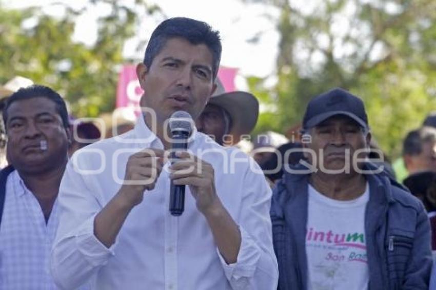 PUEBLA, Pue. 19 Julio 2023.- El alcalde de Puebla, Eduardo Rivera entrega 2 calles adoquinadas en la Junta Auxiliar de San Andrés Azumiatla como parte del programa Construyendo Contigo. //Mara González/Agencia Enfoque//
