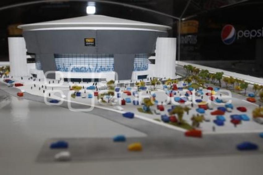 PUEBLA, Pue., 01 junio 2016.- Los empresarios Pedro Vaca, Maurice Gendreau y Arturo Gilio, realizaron la presentación oficial del nuevo centro de espectáculos Acrópolis Puebla, un recinto totalmente techado con capacidad para más de 10 mil espectadores y estacionamiento para 2 mil automóviles en los que se albergarán eventos de tipo cultural, conciertos, deportivos y de tauromaquia. Durante el acto sé realizó la develación de la maqueta del recinto que se ubica en la zona norte de la capital poblana entre los estadios de fútbol y béisbol. //Francisco Guasco/Agencia Enfoque//