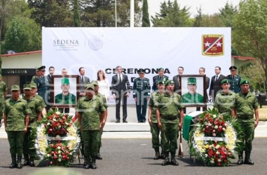 PUEBLA, Pue. 5 Mayo 2017.- Antonio Gali, gobernador del Estado durante el homenaje de cuerpo presente a cuatro militares que murieron en el enfrentamiento mientras realizaban un operativo contra personas que robaban combustible en ductos de PEMEX en Palmarito Tochapan. //Agencia Enfoque//