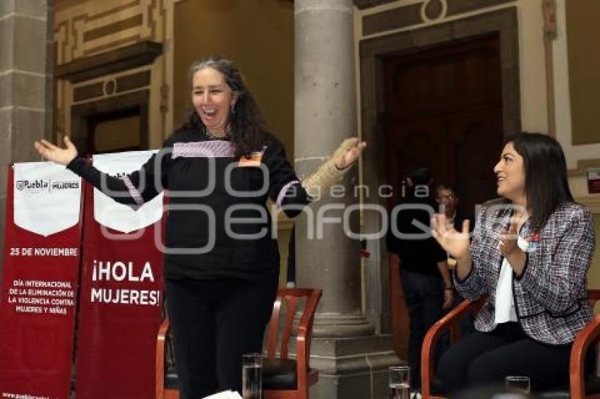 PUEBLA, Puebla, 26 Noviembre 2018.- Conferencia magistral "Por la vida y Seguridad de las Mujeres" impartida por la feminista, antropóloga, escritora y académica Marcela Lagarde, acompañada por la presidenta municipal Claudia Rivera y Catalina Pérez directora del Instituto Municipal de las Mujeres en el marco del día mundial de la erradicación de la violencia contra las mujeres. //Hilda Ríos/Agencia Enfoque//