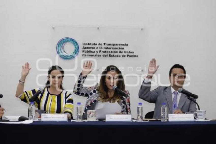 PUEBLA, Pue. 10 abril 2019.- Los comisionados Gabriela Sierra, Laura Carcaño y Carlos Loeschmann durante la sesión ordinaria del Instituto de Transparencia y Acceso a la Información del estado. //Hilda Ríos/Agencia Enfoque//
