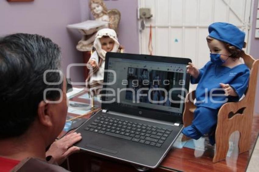 ACATLÁN DE OSORIO, Pue. 2 Febrero 2021.- A través de redes sociales se lleva a cabo la bendición virtual de Niños Dios para evitar aglomeraciones en iglesias, debido a la pandemia de Covid-19. //Idalia Medina Agencia Enfoque//