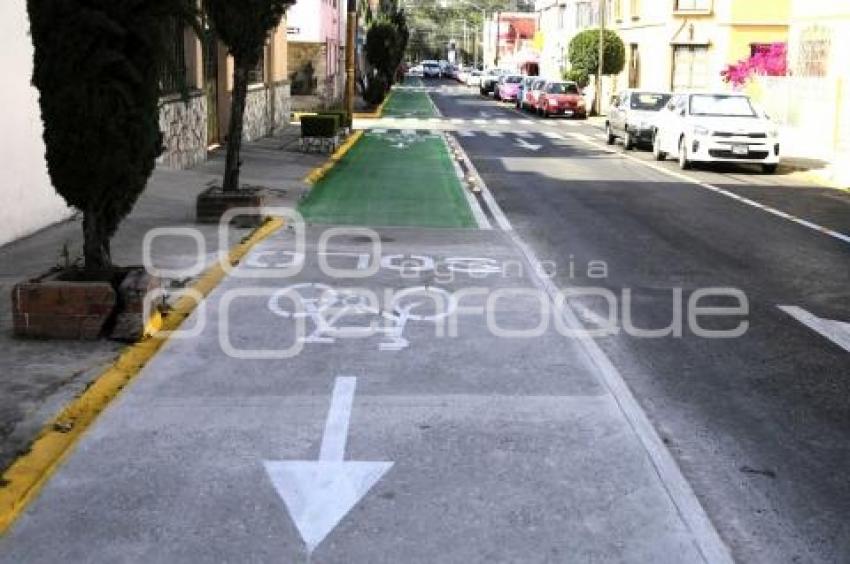 PUEBLA, Pue. 17 Marzo 2021.- Rehabilitación de la ciclovía de la 4 Sur con la colocación de carpeta asfáltica en la vialidad a lo largo de un kilómetro, de la avenida 31 a la 11 Oriente. //Rafael Pacheco/Agencia Enfoque//