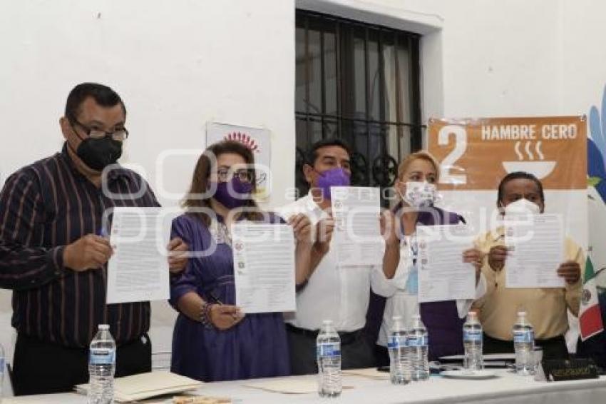 PUEBLA, Pue. 3 Mayo 2021.- Firman convenio candidatos a diputados federales por el partido Encuentro Solidario, con Ángel Manuel López, coordinador de la Confederación de Asociaciones Civiles del Estado de Puebla. //Mara González/Agencia Enfoque//