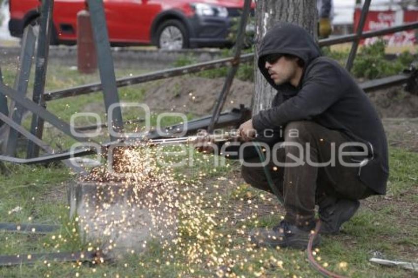 PUEBLA, Pue. 9 Agosto 2022.- Trabajadores de la Dirección General de Contaminación Visual de gobierno del estado retiran espectacular en la avenida 18 de noviembre. //Rafael Pacheco/Agencia Enfoque//
