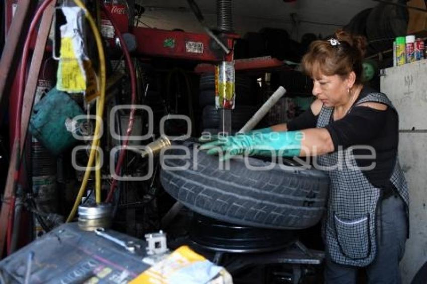 TLAXCALA, Tlax. 07 Marzo 2023.- María Teresa González Escobar es una mujer que desde hace más de 10 años se dedica a la talachería, oficio realizado en su mayoría por hombres. También conocida como "La güera”, asegura que disfruta su trabajo porque le permite convivir con la gente. //Liz Romero/Agencia Enfoque//