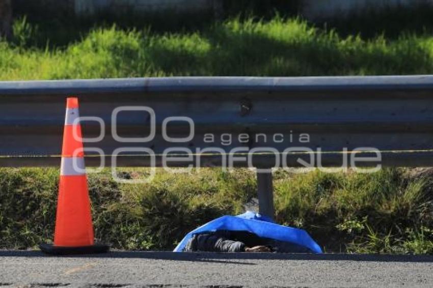 PUEBLA, Pue. 1 Enero 2024.- Un hombre fue localizado sin vida sobre la autopista Puebla-Orizaba a la altura de la junta auxiliar de La Resurrección; hasta el momento se desconoce si fue arrollado por algún vehículo. //Rafael Pacheco/Agencia Enfoque//