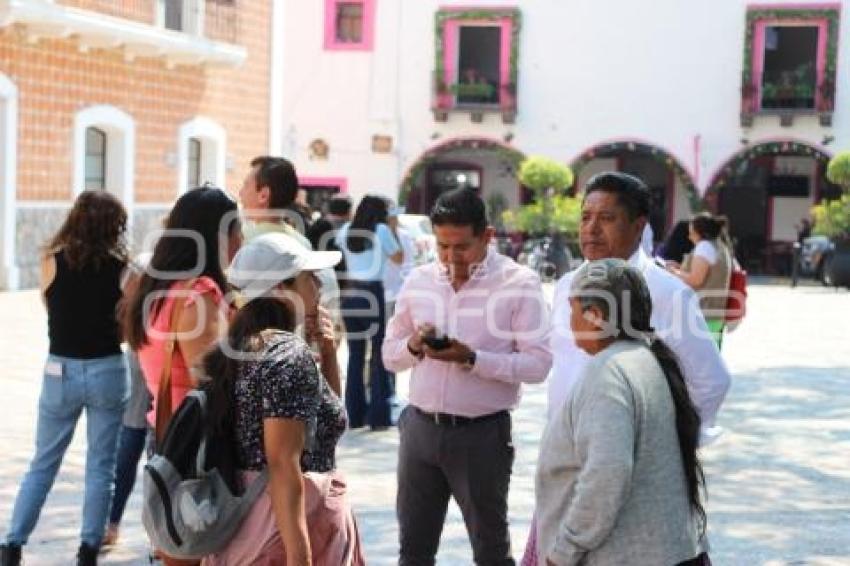 ATLIXCO, Pue. 28 Febrero 2025.- Ciudadanos de Atlixco evacuaron edificios del centro de la ciudad debido a la activación de la alarma sísmica. En Puebla se registró el sismo de manera leve que tuvo una magnitud de 5.1 con epicentro en Iguala. //Eleazar Narciso/Agencia Enfoque//