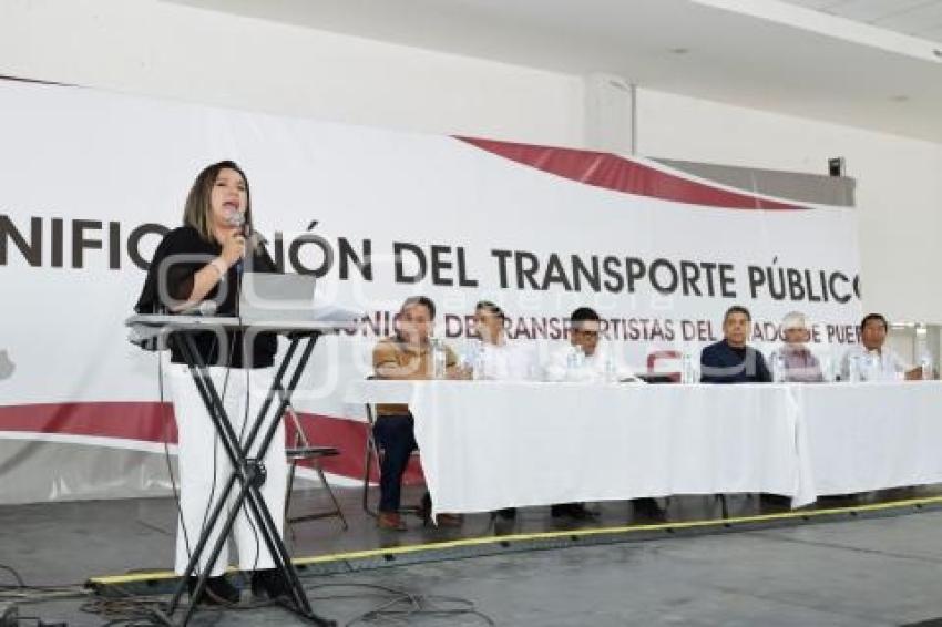 PUEBLA, Pue. 31 Marzo 2025.- Berenice Uribe Juárez, representante del Gremio del Transporte Público del Estado de Puebla, encabeza una reunión con conductores y dueños de concesionarias, en un salón social. //Oscar Rodríguez/Agencia Enfoque//