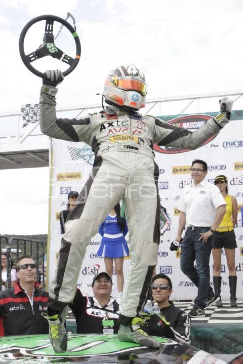 AMOZCO, Pue, 30 Agosto 2015.- El piloto Irwin Vences del equipo Axtel-Avaya gana el primer lugar de Carrera NASCAR México, Amozoc 240 correspondiente a la fecha 9 realiza en el autodrómo Miguel E. Abed en Amozoc, Puebla. //Agencia Enfoque//