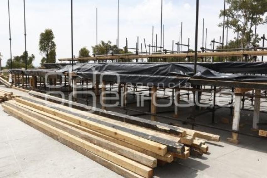 PUEBLA, Pue., 25 Abril 2016.- Trabajadores realizan la colocación de templetes y mantenimiento de la fuente del general Ignacio Zaragoza, para los preparativos a la celebración del desfile conmemorativo del 5 de Mayo. //Francisco Guasco/Agencia Enfoque//
