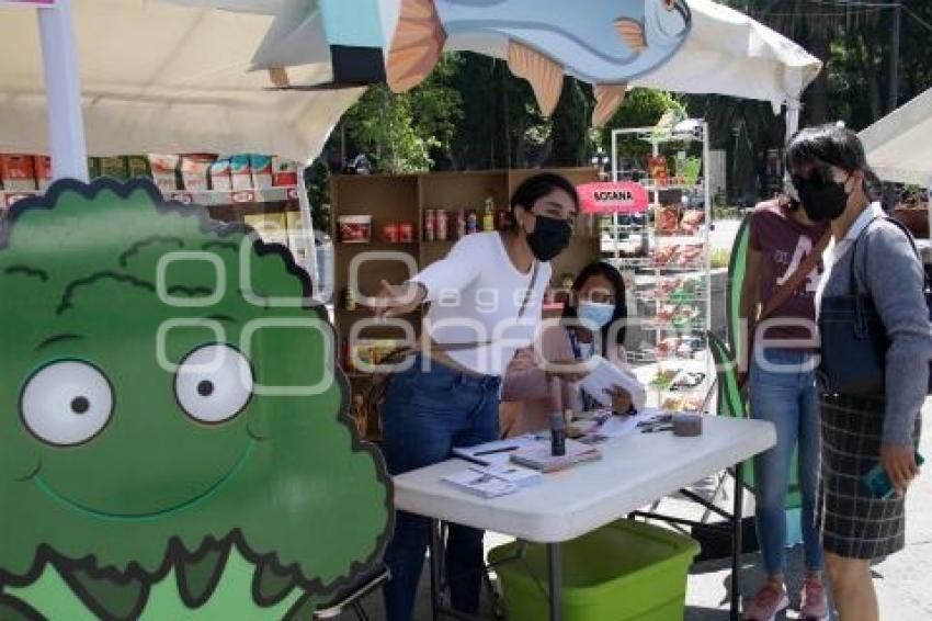 PUEBLA, Pue. 15 Mayo 2022.- Personas recorren las actividades de la Jornada Aprendiendo para la Vida que se realiza en el zócalo de Puebla, como parte de las actividades del programa Contigo Mujer. //Mara González/Agencia Enfoque//