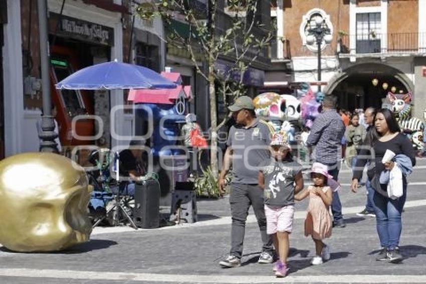 PUEBLA, Pue. 05 Noviembre 2023.- Familias recorren las calles del Centro Histórico este domingo, disfrutando del último día del puente vacacional por Día de Muertos. //Mara González/Agencia Enfoque//
